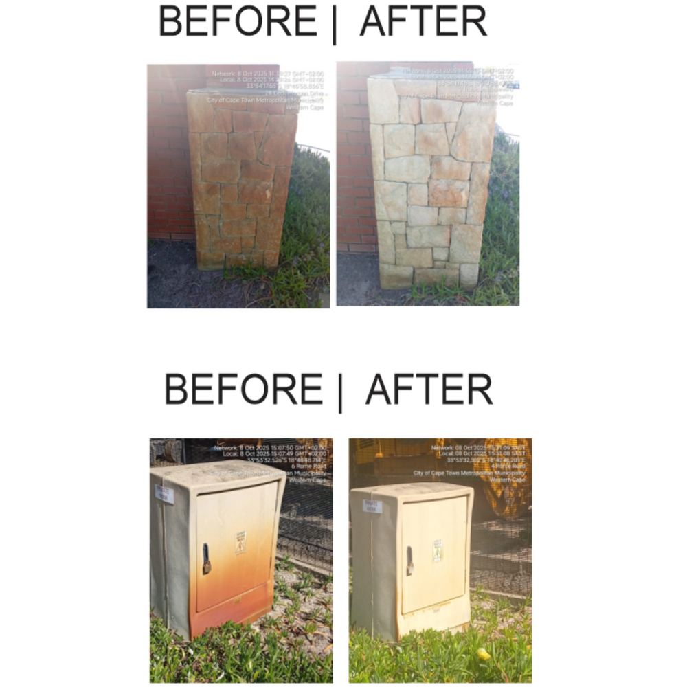 Removes iron stains from walls caused by contaminated borehole water. This acid based formula safely digests iron compounds without damaging surfaces.